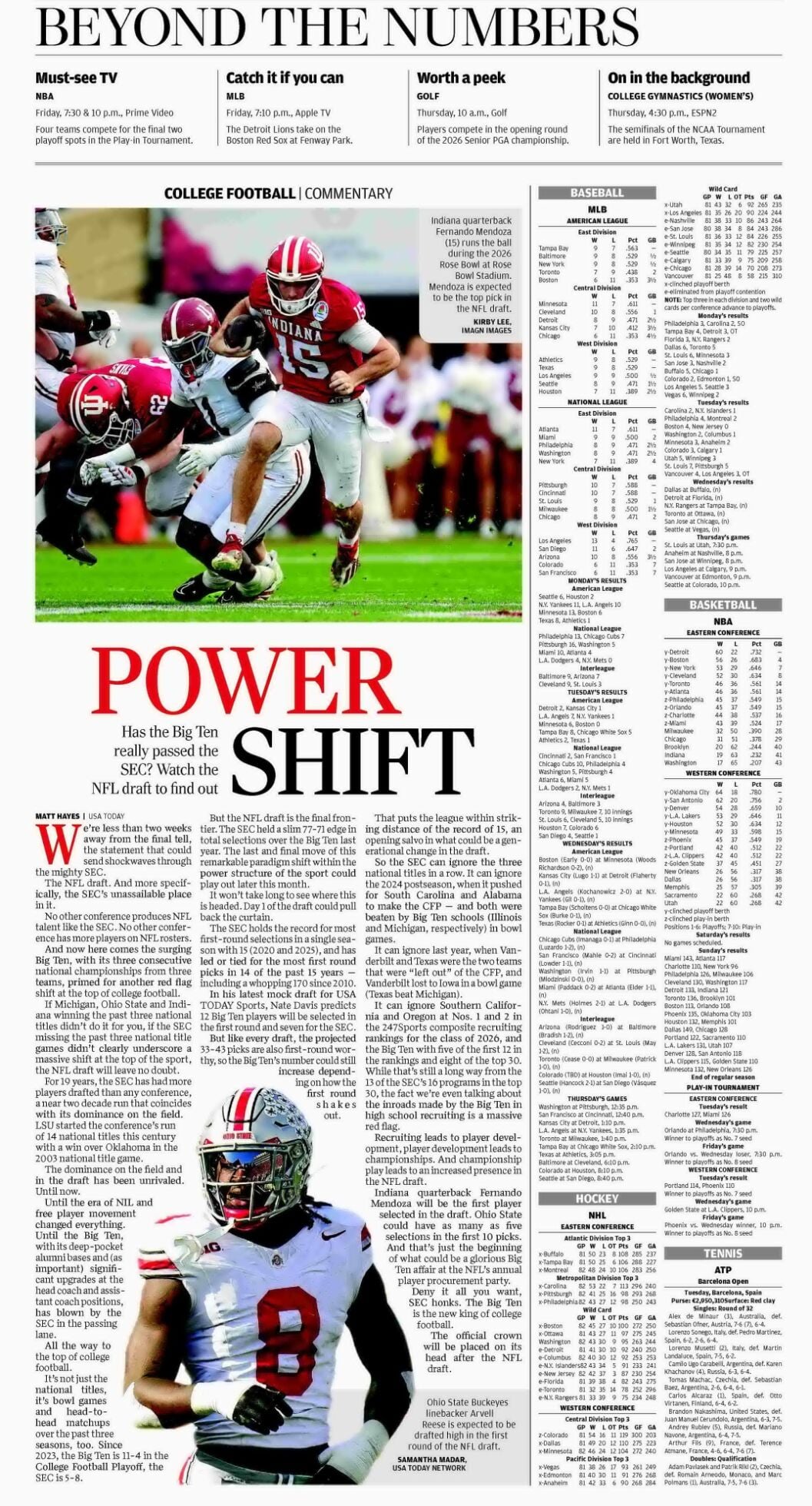 Indiana quarterback Fernando Mendoza will be the first player selected in the draft. Ohio State could have as many as five selections in the first 10 picks. And that's just the beginning of what could be a glorious Big Ten aff air at the NFL's annual player procurement party.